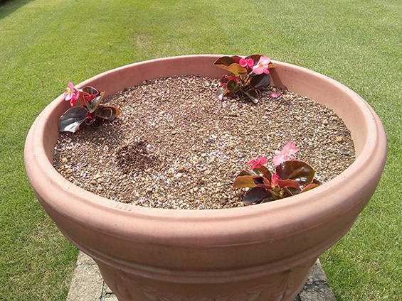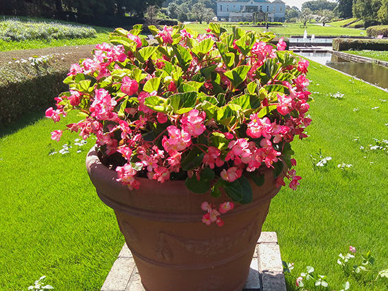 ベゴニアには多くの園芸品種がありますが、中でも四季咲きベゴニア(センパフローレンス)は鉢植えや花壇でよく活用されています。「バイキングXL」シリーズは従来の四季咲きベゴニアと比較して、草丈や花が非常に大きく存在感があります。1株で広い面積をカバーできるため大規模な花壇や大鉢での栽培に向いています。海外でも耐暑性や耐乾性が高く評価されており、欧米やアジアでは、優れた分枝性と花付きのよさを生かし、立体的な花壇でも活用されています。