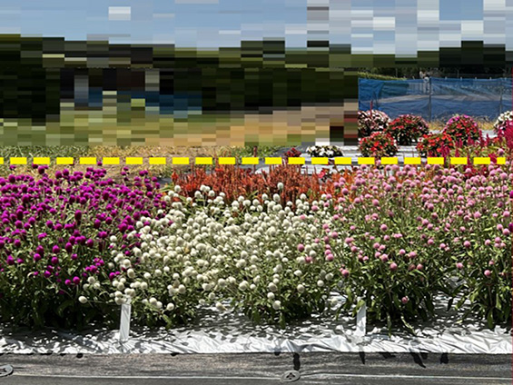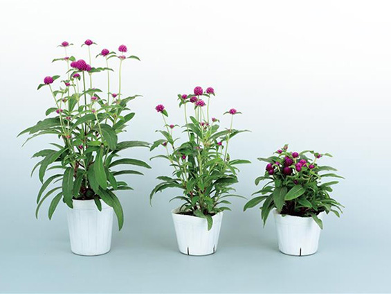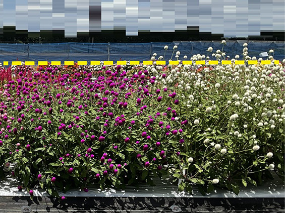 センニチコウは、耐暑性と乾燥耐性、草丈の高さを兼ね備えており、春から夏の花壇に好適な、数少ない品目です。一方、市場には草丈の高さと倒伏耐性を兼ね備えた品種が少なく、立体的な花壇づくりの際に、草丈の高い品種は、節間が長く分枝が少ないため、風の影響を受けやすく株が倒れてしまう傾向がありました。